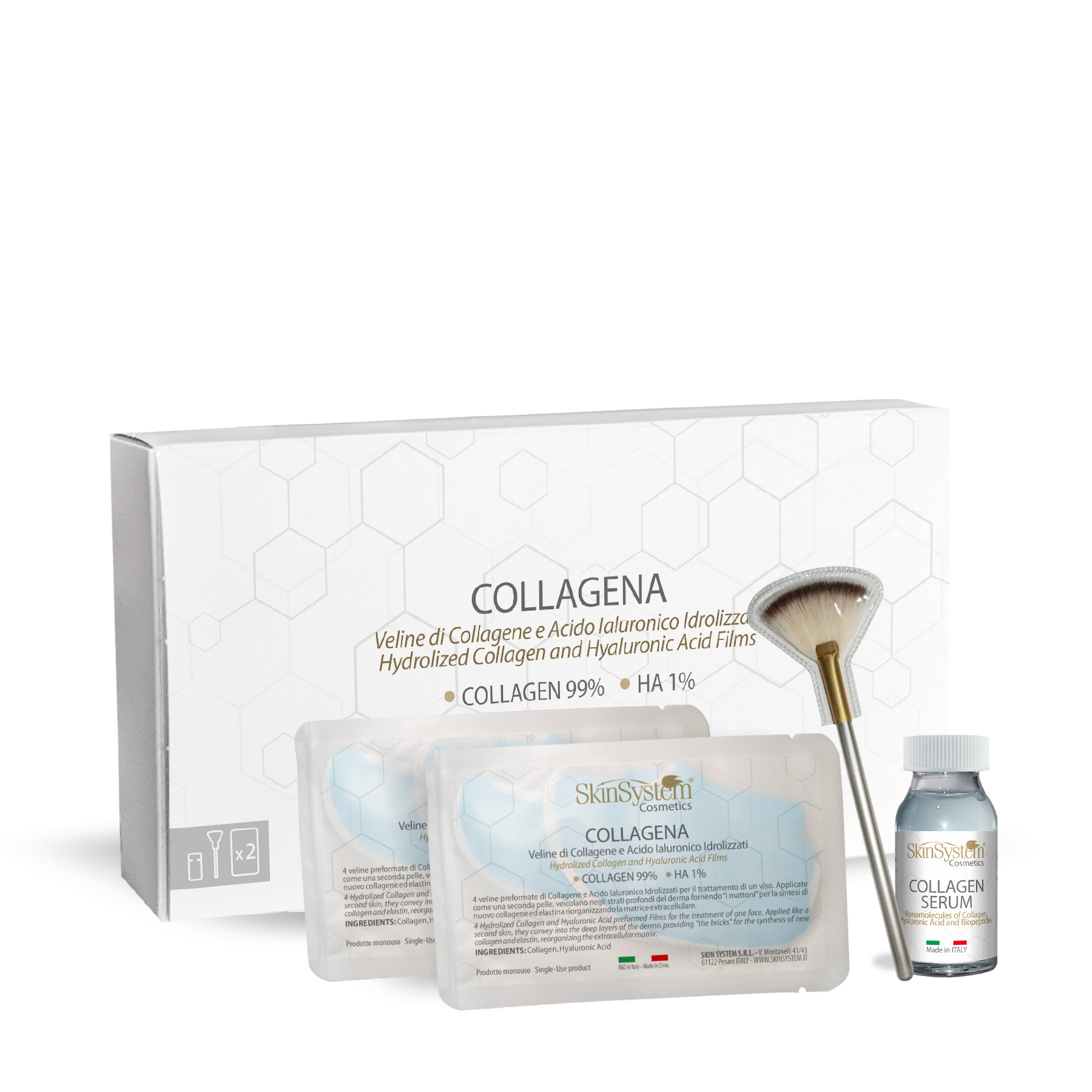 Trattamento con Veline di Collagene e Acido Ialuronico Idrolizzati & Collagen Serum a base di Collagene, Acido Ialuronico Puro a 5 PM e Biopeptidi.