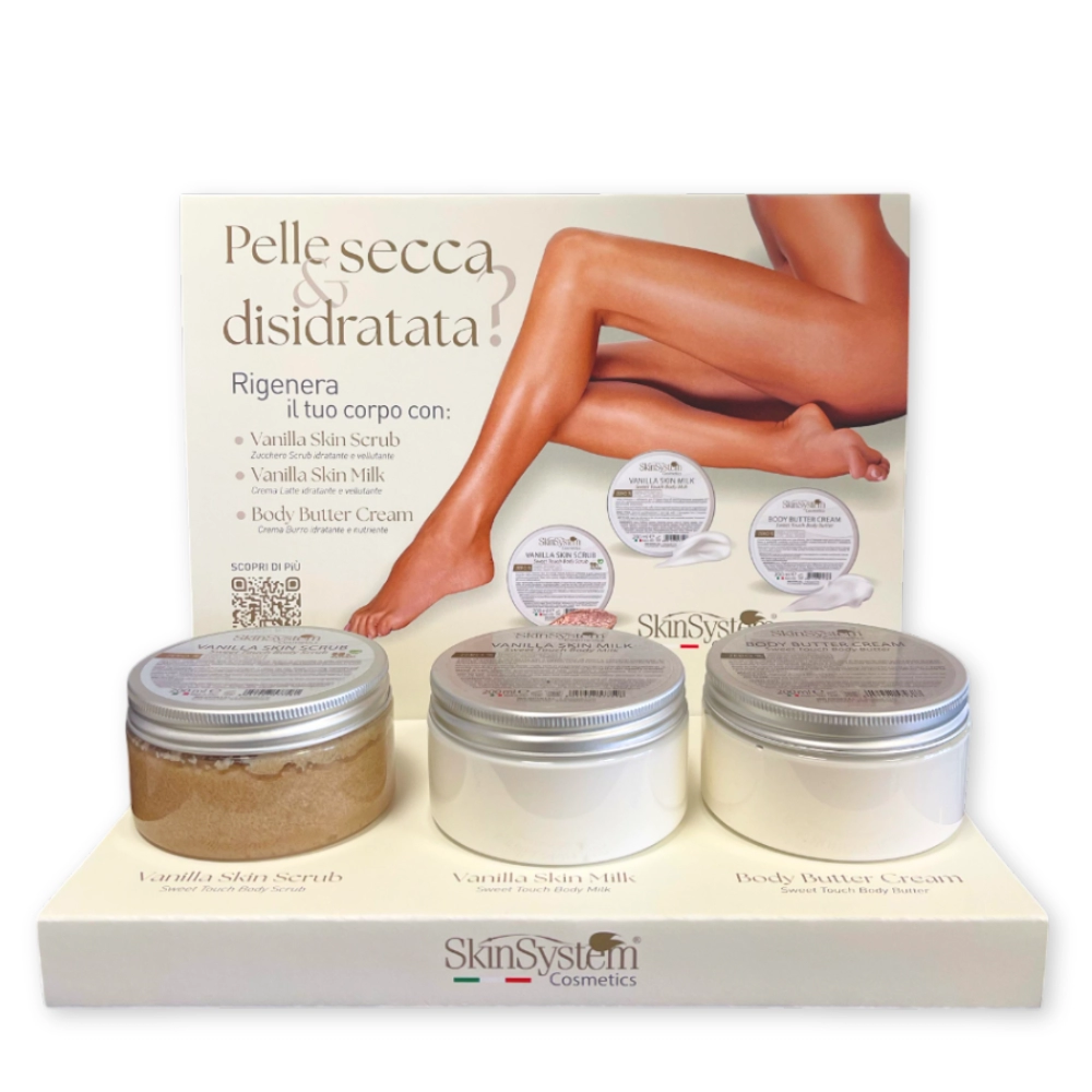 Un’esclusiva selezione di prodotti Skinsystem studiata per idratare, nutrire e vellutare la pelle del corpo, ora disponibile in un pratico kit con espositore incluso: l’ideale per la rivendita presso palestre, centri estetici, centri sportivi, farmacie o punti vendita.